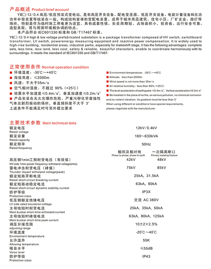 YBW-12/0.4高压/低压预装式变电站(欧式箱变)